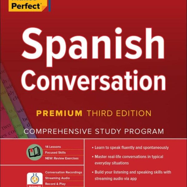 Practice Makes Perfect: مکالمه اسپانیایی در حدود 12 واحد تشکیل شده است که شرایط مکالمه خاص و سناریوهای معمول و روزمره را ارائه می دهد. هر واحد دستورالعمل های مفیدی در مورد تلفظ صحیح ، دستور زبان ، نحو و کاربرد کلمات ارائه می دهد. برنامه انحصاری McGraw-Hill Language دارای ضبط های صوتی جریانی از تمام گفتگوهای کتاب ، به علاوه پاسخ بیش از 100 تمرین است.